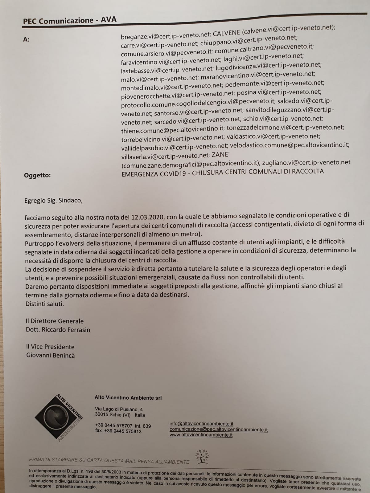 SI CONFERMA LA CHIUSURA DELL’ECOCENTRO già dalla giornata di domani.