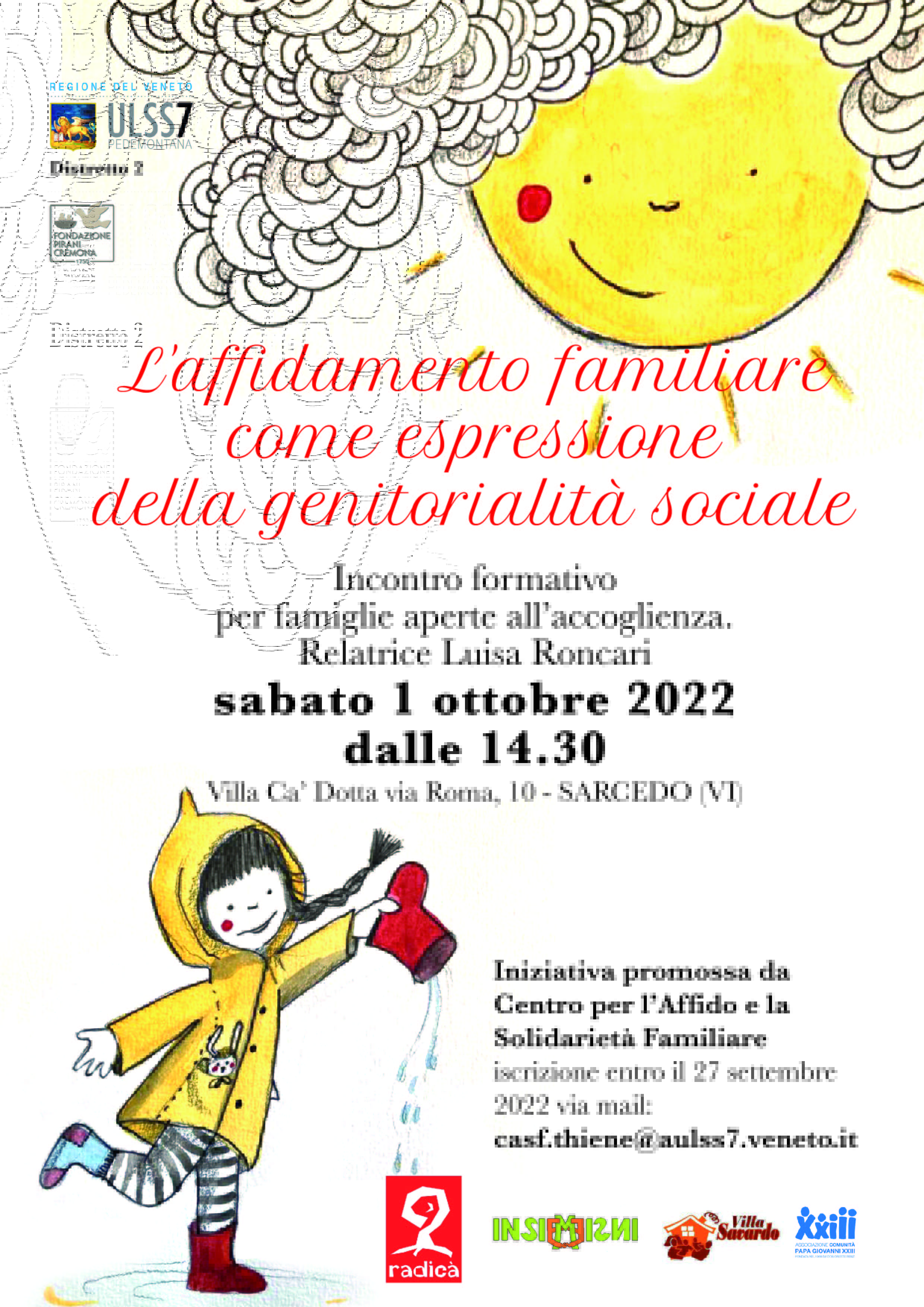 Il Centro per l'Affido e la Solidarietà Familiare dell'Ulss 7 organizza 2 iniziative che si svolgeranno in Villa Ca' Dotta a Sarcedo: